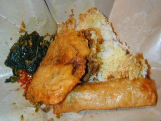 1月12日(日) 水底起き出す。朝、ご飯を食べ、昼はDewa Warunにてナシソトアヤムとする。ソトアヤム、つまりチキンスープにご飯である。Dewa Warunは、場所を移していたが内装はそのまま持ってきたようでまったく同じかと錯覚するぐらいぼろぼろ。しかし味はおいしく、安い。夜は、Noodlesにて麺を食べ、影絵のワヤンクリッを見、パダン料理屋でブンクスして帰り、食べる。 食:8時、ナシチャンプルー、フルーツサラダ。 食:12時、ナシソトアヤム、エステ(Dewa Warun) 食:18時、麺、エステ(Noodles) 食:22時、春巻、鶏、揚げ物などのパダン料理ご飯ブンクス