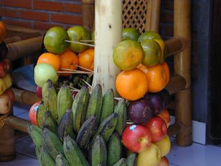 1月15日(水) 朝、ナシチャンプルーを食べ、その後歩いてから今回行きそびれていたKUBUKUカフェに行きスイカジュースとバナナパンケーキを食べる。そして、Warun Nyomanで鶏と海老のナシチャンプルーを食べながらビデオのインドネシア語版ドラえもんを見る。部屋に戻ると、なんと最終日ということでさらにご飯を出されて、うんうんいいながら食べる。水底は、Warun Nyomanのナシチャンプルーを回避したが、おばあちゃんのおかゆ屋でおかゆ2種類を買ってしまったので、これもまた大変であった。夜、空港に入る。行き便は直行であったが、帰り便はジャカルタ経由。そのため2回機内食がきちんと出た。ジャカルタで日航の成田行きがキャンセルされたとかで日本人ビジネスマンが大挙して乗り込んできた。少し遅れる。 今回のバリ島の旅行で印象に残ったのは、アメリカンクラッカーがはやっていたこと。2カ月前からはやったらしい。そして、観光客が極端に少なかったこと。2001年の911に続き、昨年10月のテロが響いているようである。何人ものバリ人にテロについて聞かれる。ウブッの道がきれいになっていたこと。宿の子どもたちが大きくなっていたこと。 インドネシア語版ハリー・ポッター1〜4巻を入手したこと。 円ルピアは1円=74ルピアぐらいだった。 ご飯はあいかわらずおいしい。 物価は日常品が上がっている。外国人向けのものはあまり上がっていないが、ウブッで行われる踊りのほとんどが50000ルピアになっていた。2年前が値上がりして25000で5年前は8000ぐらいだったのでなかなかの値上がりである。同様に空港税が100000ルピアになっていた。前回は50000ルピア。その前が25000ルピア。 インフレもまたすごい。 バリ人はお祭りがあるのでお金がかかる。特にお金が入る人は、それだけいろいろしなければならなくなる。 インターネットの環境はあいかわらずで、56kの電話回線。ただ、パソコンがよくなっている店も多い。日本語も見るだけでなく入力可能になっている。これなら、フリーメールなどのWEBメールでいいかもしれない。 あいかわらず、人々は何もかもを川に流す。プラスチックごみがすごい。 あいかわらず、川で洗えばきれいになるという意識もまた高い。 バリ人のみならずインドネシア人全般がそうだと思うのだが、子どもは生まれたときから親、親類のみならず、近所の人、知らない人など多くの人に取り囲まれ、コミュニケーションを受けて育つ。現代日本では、ともすると、母親とだけで幼少期を過ごしかねない。この違いが精神的成長の違いを生むのではないだろうかと感じる。 そして、バリ島の神々は今もまた深い力を持っている。 水底は、2年分の日本の毒を出したところで帰るはめになった。 私は、暖かいところだったので腰の調子がよかった。そして、よく眠り、よく食べた。約1kgほど増えた。 食:8時、ナシチャンプルー、野菜サラダ。 食:12時、バナナパンケーキ、スイカジュース(KUBUKU) 食:13時、ナシチャンプルー、エステ(Warun Nyoman) 食:15時、ナシチャンプルー(宿で) 食:23時、機内食 1月16日(木) 晴れ。朝9時半成田着。零下1度。しかし、行きはもっと寒く、風も冷たかったので、暖かく感じる。が、やはり、寒い。早朝機内食を食べる。帰路、東関東自動車道の最後でかき揚げそばを食べる。帰宅後、水底妹がこしらえておいた煮物を食べ、夜は、水底がインドネシア風カレーをこしらえ、それを食べる。H氏が北海道の羊肉を持ってきてくれたので、それを焼いて食べる。早々に寝る。 宅配:白菜、えのき、蓮根、さつま芋、ふきのとう、小松菜、わけぎ、セロリ、りんご、ゆず、さつま揚げ、豆腐、納豆、油揚げ、厚揚げ、塩鯖、豚バラ肉 食:6時、機内食。 食:12時、かき揚げそば。 食:14時、芋の煮物、果物など。 食:19時、ご飯、カレー、羊肉焼き、ポークビーンズなど。 1月17日(金) 晴れ。夜、満月が隣家の竹林に映える。プールに行く。朝起きたらパソコンがクラッシュしている。幸いバックアップのあるサーバなので、修復する。しかし4時間以上作業にとられてしまう。考えものである。その後仕事。水底は、新宿で京王百貨店の駅弁フェアに行く。私は、朝、昨日の残りを食べる。昼、餅を焼く。夕方、水底が買ってきたいなり寿司とめはり寿司を食べる。夜、ご飯を精米して炊き、味噌汁をこしらえ、納豆でご飯を食べる。味噌汁は、煮干し、人参、大根、蓮根、里芋、さつま芋、白菜、葱、小松菜、油揚げを入れる。美味。 購入:牛乳、葱、納豆、マヨネーズ、カレールー、冷凍うどん、生そば、焼きそば麺、竹輪。 食:9時、ご飯、カレー、ポークビーンズ。 食:12時、餅。 食:16時、いなり寿司、めはり寿司。 食:21時、ご飯、味噌汁、納豆、ふりかけ。 1月18日(土) 曇り。日経新聞のコラムで、千葉の大学教授がセンター試験について書いていた。毎年昼食用のごみ袋を用意するが年々出るごみが減っている。弁当を食べている姿も少ない。共通一次試験が始まったころは、皆