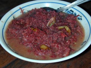 | コンビーフのにんにく炒め | 豆魚スープと合わせて飯に乗せる |