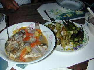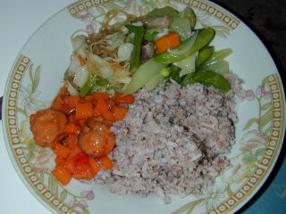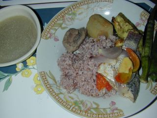 | G氏の家。焼きなすが美味 | 魚も赤米ごはんも美味 |