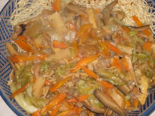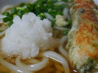 | まず焼きそばを焼き付けるのがこつ | 竹輪の磯辺揚げにはうどんが似合う |