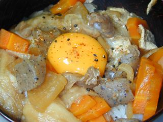 食:23時、牛すじ玉子丼、トマトときゅうりのサラダ、納豆。
