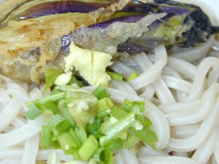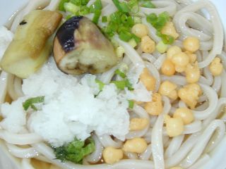 実は、なすの天ぷらもうどんにのせています 桜えびの焼きめし