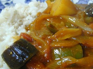 食:13時、カレーライス、なすのぽん酢、にがうりのぽん酢。