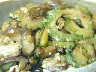 にがうりの付け合わせ なすとにがうりのチャンプル