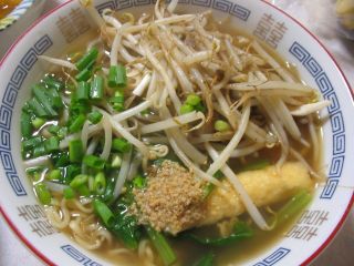 昼、ラーメンにする。インスタントラーメン。もやしと舞茸を炒める。油揚げ、小松菜を入れる。葱とすりごまを入れる。これに、かぼちゃやキムチ、納豆も。
