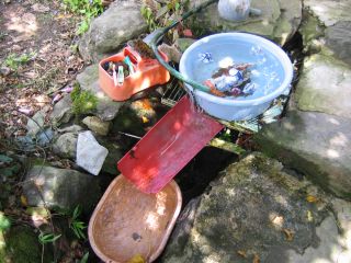●村丸ごと生活博物館 水俣市は「水俣市元気村づくり条例」を設置して、村丸ごと生活博物館の指定を行っています。これは、「地域全体を建物のない博物館とし、地域の生活文化、自然、産業などを、住んでいる人が、訪れた人に案内、説明するもの」(市HP)で、まさしく、グリーンツーリズムそのものです。村丸ごと生活博物館には、そのための建物はありませんが、「生活学芸員」と「生活職人」がいます。 「生活学芸員」は、案内人です。暮らしのこと、食のこと、田畑や道具のこと、遊びや自然のことを訪ねてきた人に教えます。 「生活職人」は、生活の技を持っている人です。たとえば、こんにゃくづくり職人や、煮しめづくり職人、木工職人、野菜づくり職人、猪とり職人などです。 どちらも、市が審査をして、市長が認定します。 第一号の村丸ごと生活博物館になった「頭石(かぐめいし)地区」を訪ねました。頭石地区は、41世帯、約130人で、鹿児島県との県境に近い山手の集落です。 今回は、バス1台約40人が訪問しました。3分の2ぐらいが水俣市内の方で、「どんなものが食べられるだろうか」と興味津々です。 まずは、生活学芸員の勝目さんの案内で、頭石地区を歩きます。 石積みの集落で、田んぼの畦などが古くからの石積みでできています。 山の斜面なので、いくつもの水路がつくられ、庭先や田んぼに引き込まれています。庭先の水は、今も洗い物などに使われています。とても澄んで冷たい水です。 昔から、川筋に水路をつくって田んぼに水をわけてきました。河川工事が進んだ今でも、同じように水路をつかって田んぼに水を引いています。 山の神様にお供えをするために、竹の筒を石積みの壁につるしてあります。 急傾斜地で、岩が多い頭石地区は、豪雨による土石流などの災害もある土地です。山と山水に感謝しながら大切に使っている姿が印象的でした。 道を歩いていると、各戸の庭先に薪が積んであります。新しい薪です。暖房に使うのかと聞いてみたら、「今は、暖房も、かまどもガスですが、赤飯やもち米を蒸すときは、かまどに火を入れて薪で炊きます。そうでないとおいしくない」とのこと。そうやって薪を活かすことで、今も山との距離を近く暮らしています。 田んぼでは稲穂が揃い、大豆畑では実が少しずつ太りはじめていました。畦には小豆が植えられています。 道ばたには、かぼちゃの種が干され、来年の植え付けのために大切に扱われていました。 ●あたりまえの料理の力 お昼は、煮しめづくりの生活職人、こんにゃくづくりの生活職人をはじめとする頭石地区女性陣による地場産料理がテーブルにずらりと並びました。 圧巻な料理をずらりと名前と素材を並べてみます。 <きんぴら> 干したけのこ、ごぼう <煮しめ> 昆布、じゃが芋、干したけのこ、かぼちゃ、切り干し大根、こんにゃく、干し椎茸、ささげまめ、人参、ふき、といも(芋がら)、厚揚げ、卵焼き <酢の物> といも、人参、油揚げ、梅酢 <卵とじ> 干しくさぎ菜、卵 <すみそ和え>こんにゃく、みょうが、といも、ミニトマト、梅を味噌に漬けたもの <サラダ> さらし玉葱、大葉 <だご汁> いりこ、人参、ごぼう、干し椎茸、こんにゃく、里芋、鶏肉、だご(中力粉、もち米粉) <ごはん> おにぎり、栗おこわ(栗、小豆、もち米)、巻きずし(卵焼き、干し椎茸、きゅうり、切り干し大根) <漬物> 梅干し、にがごりのみそ漬け、にがごりのぬか漬け、にがごりの酢漬け、高菜漬け、人参の味噌漬け、たくあん、寒漬け3種 <デザート> しそゼリー、紫さつま芋の芋ようかん、栗の渋皮煮、にがごりのかりんとう そのほか、ハーブのミントや大葉が飾り付けとしてあしらわれていました。 この中で、買ってきたものは、昆布、厚揚げ、卵、いりこ、鶏肉ぐらいです。そのうち、水俣産でないのは昆布ぐらいでしょうか。おおよそ30〜40品ぐらいの素材が使われています。ひとつの食材でも干したり、生鮮だったり、漬けたりと味わいも様々です。 栗の渋皮煮やといもとみょうがの酢みそ和えなどは、今、ここでなければ味わえない一品です。 すべての料理を食べる前に説明していただきました。田畑や素材が作られる場所を見て、その空気と水の下で食べる料理は、ふつうより2倍も3倍もおいしく味わえます。 ●5月は忙しいけれど…くさぎ菜 今回個人的にはじめて出会った食材は、くさぎ菜です。自生している葉を5月に採取し、乾燥して保存します。生の葉っぱをかじってみましたが、くさくてとても食べられたものではありませんでした。食べるときには、水で戻して、何回かゆでこぼしてあくを抜き、それを炒めて卵とじにしたりして食べます。見た目では分からないほど手間がかかっています。 今回は、卵とじ炒めでした。 料理されたものを食べると、不思議なことに、くさみやあくがなくなり、独特の軽い苦みとうまみがあって、あとを引きます。 5月は、田植えや野菜の植え付け、山菜やたけのこ取り、干したけの