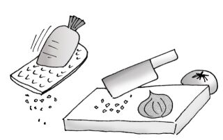 (2)材料を全てみじん切りにする。にんじんはすりおろす。