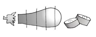 (1)なすはへたをとり、皮ごと3cm幅に切る。