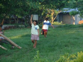 | 農と食の環境フォーラムでは、2000年度より、フィリピン・ルソン島の北部、イフガオ州リトル・タジャン村での農業自立と環境保全をテーマにしたプロジェクトを発足しました。ここに1年間の中間活動報告を行います。(2001.10.31) 【背景】 フィリピンを含む東南アジア諸国では、急速な経済発展によって、伝統的な地域社会が崩壊し、その結果、森林が伐採されたり、持続可能な農業が、土地収奪型の農業に変わっています。そして、崩壊した地域社会の人々は離散し、文化が崩壊しています。 これは、地球規模の環境破壊を生むひとつの典型です。 環境破壊を防ぐ手だてには、地域の気候風土に合った森林を回復し、地域で循環可能な範囲での農業生産を行う必要があります。しかし、そこに生きる人々が、経済的手段を失ったままでは、森林の回復も、持続可能な農業も成立しません。同時に、地域社会が生き生きとしたものになり、地域社会が持続可能になることで、はじめて、農地や森林が再生が可能になります。 ●リトル・タジャンの概略 フィリピンにいくつもある少数民族村は、今、崩壊の危機にあります。そのひとつ、イフガオ州リトル・タジャン村は、1970年代に中央山岳地帯のタジャン地域から政府プロジェクトによって移住してきた少数民族であり、60世帯が暮らしています。また、近隣には同様に100世帯の少数民族村があります。 土地面積は、4千ヘクタール強。15〜35度の傾斜地が連続する丘陵地です。入植期には、すでに土地の森林のほとんどが伐採されており、集水域周辺に小さな森がある他は、草地になっていたといいます。現在、面積の約4分の1が農地として使われ、主に、飼料用トウモロコシ栽培を行っています。また、比較的低地でため池のあるところや小川があるところでは小規模の水稲栽培が行われています。しかし、フィリピン平野部のような年2作ではなく、天水に依存した年1作の栽培となっています。その他の部分は水牛、ブラーマン種牛の放牧地として、草地のまま利用されています。さらに、自給用としてバナナ、マンゴー、インゲン、ニガウリ、トマト等も栽培されていますが、ほとんどが自家消費用です。雨天時には利用できない悪路を車で4時間ほどの距離にある平野部の町アウロラで木曜日、日曜日に開かれる市場以外販売先がないことと、農業用水がなく降水に依存し比較的乾燥に強い農作物しかできないという問題があるためです。作物の畑は水の散布を考えため池等水場周辺に見られます。 リトル・タジャン村がかかえているさしせまりかつ重要な問題は大きく2つあります。 ひとつは、その農業と経済構造で、もうひとつは、水問題です。 ●ぎりぎりの農業状況 リトル・タジャン村の経済的中心は飼料用トウモロコシです。牛は教育費やいざというときの蓄財として育てられており、経済的中心にはなっていません。この飼料用トウモロコシは、化学肥料、除草剤を使いハイブリッド種子を購入して生産されています。これら化学肥料、農薬、種子の購入を行い、生産後、仲買人に売却します。当然、この期間の現金収入がないため、彼らは次の収穫および土地を担保に借金をしています。農業資材、売却先、借り入れ先は村外にあります。飼料用トウモロコシは国際相場に影響され、また、彼らがじゅうぶんな知識を持っていないこと、情報がないこと、かつ、売り先が限定されることから経済的な悪循環が生じ、借金が借金を生む構造に陥っています。もっとも、このような状況は、他のフィリピン農村、アジア農村、ひいては日本にいたっても大なり小なり発生する事象ですが、リトル・タジャン村では2001年時点で担保の土地を奪われ生産手段を失った住民が若干発生しており、このままの状態が続けばこれまでの他の地域での歴史をみるまでもなく、住民は極度の貧困におちいり、村落が崩壊することは容易に予想されます。 まだ、極度の貧困と飢餓のような最悪の状態にはいたっていないため、今後の取り組みいかんによっては持続可能な農業と生活が可能なぎりぎりの状況にあると言えるでしょう。 さて、この飼料用トウモロコシですが、リトル・タジャンで経済作物として作付けされるようになったのは1990年代に入ってからで、入植がはじまってから20年間ほどは野菜・芋などの自給用作物を栽培、販売していました。その後、飼料用トウモロコシ栽培がはじまり、わずか10年ほどで借金漬けの生活となったわけです。 ●水源確保と汚染 リトル・タジャン村は山岳地にあるため河川等の水源がありません。生活用水は主に雨水の集水域に集まる地下5〜10メートルの浅い井戸に依存しています。頻度はあきらかではありませんが、渇水年には井戸が枯れてしまい、ある地域では村から4kmほどはなれた小さな泉のみが唯一の水源となった年もあったといい、渇水に対する恐れを彼らは常に口にします。 雨水の集水域にあるため、住居などよりは最低でも5〜10m